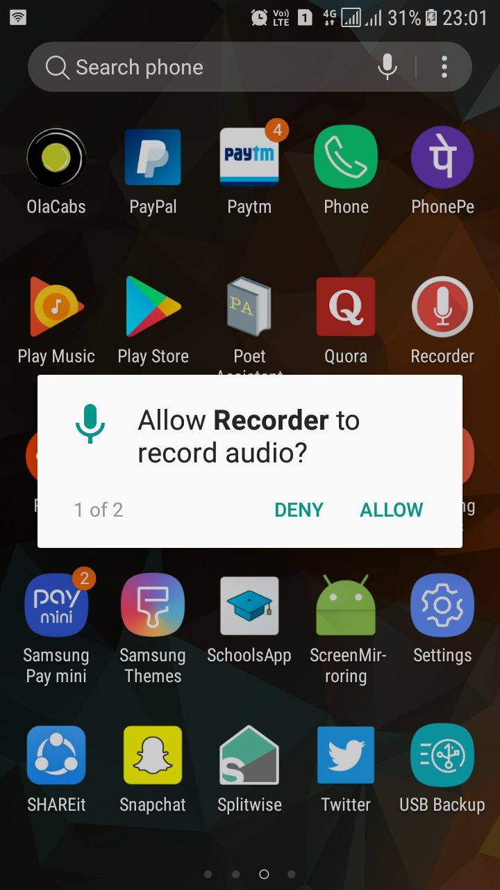 Add the required permissions in Android.manifest for record_audio and file_storage. Now build the project and run the app. It should ask for permissions when you open it for the first time.