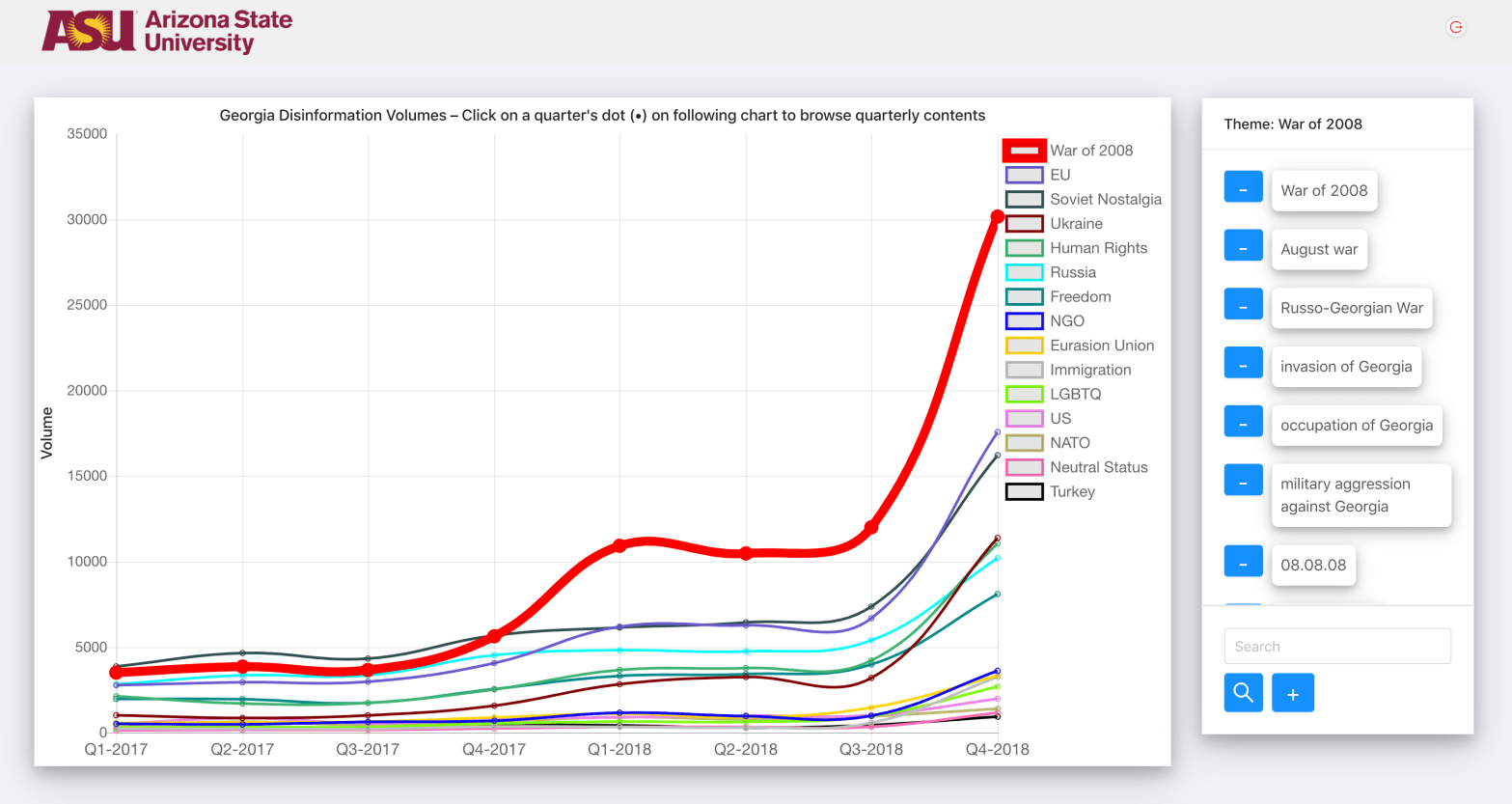 What: I worked on Looking Glass, a Data Mining and Visualization tool developed for storing and analyzing views from social media networks and identifying disinformation spread on social media and find accounts spreading it. McCain Institute (ASU) developed their report on “Tracking and Refuting Disinformation in Georgia” using the tool. Where: I developed the toolContinue reading “Looking Glass”